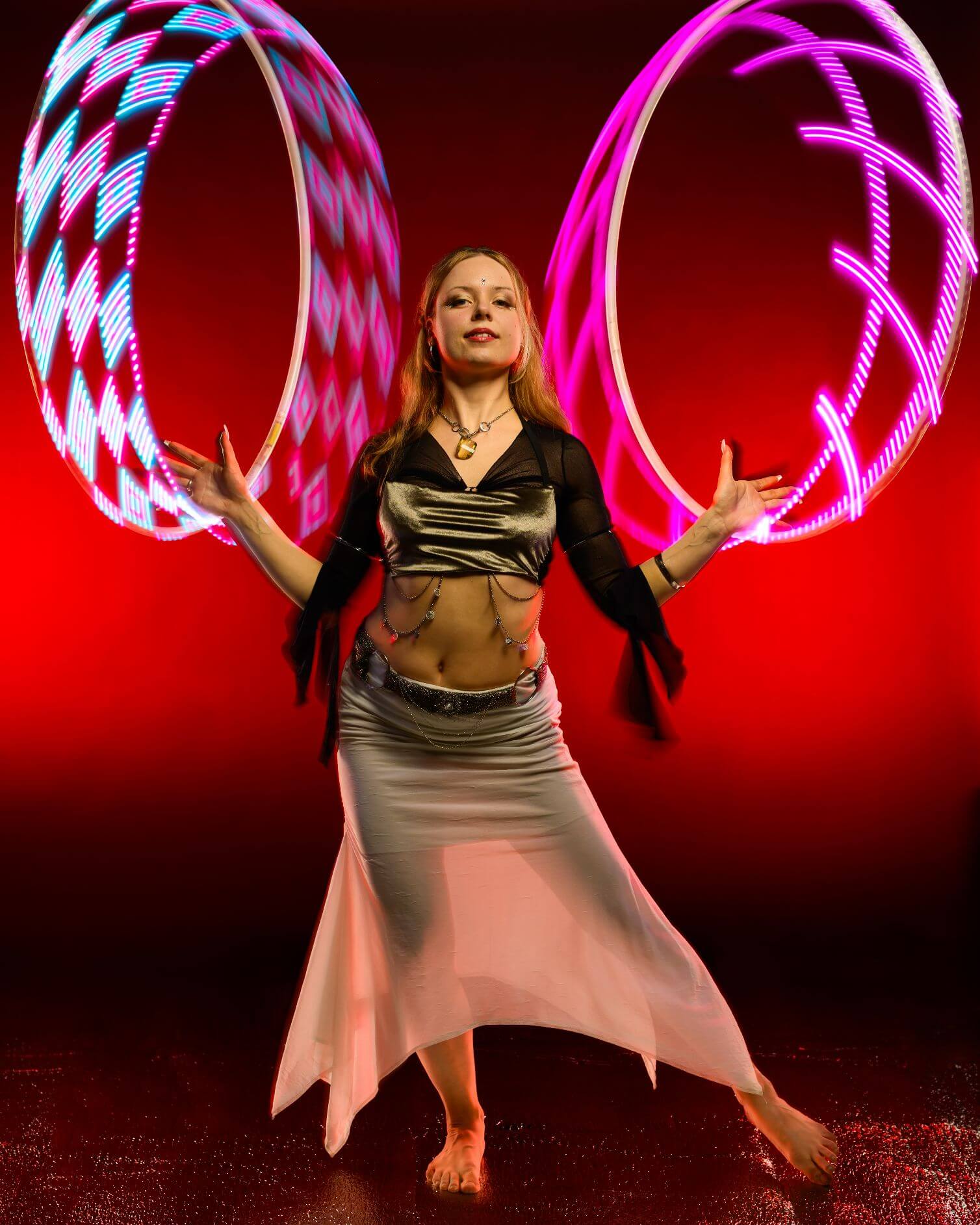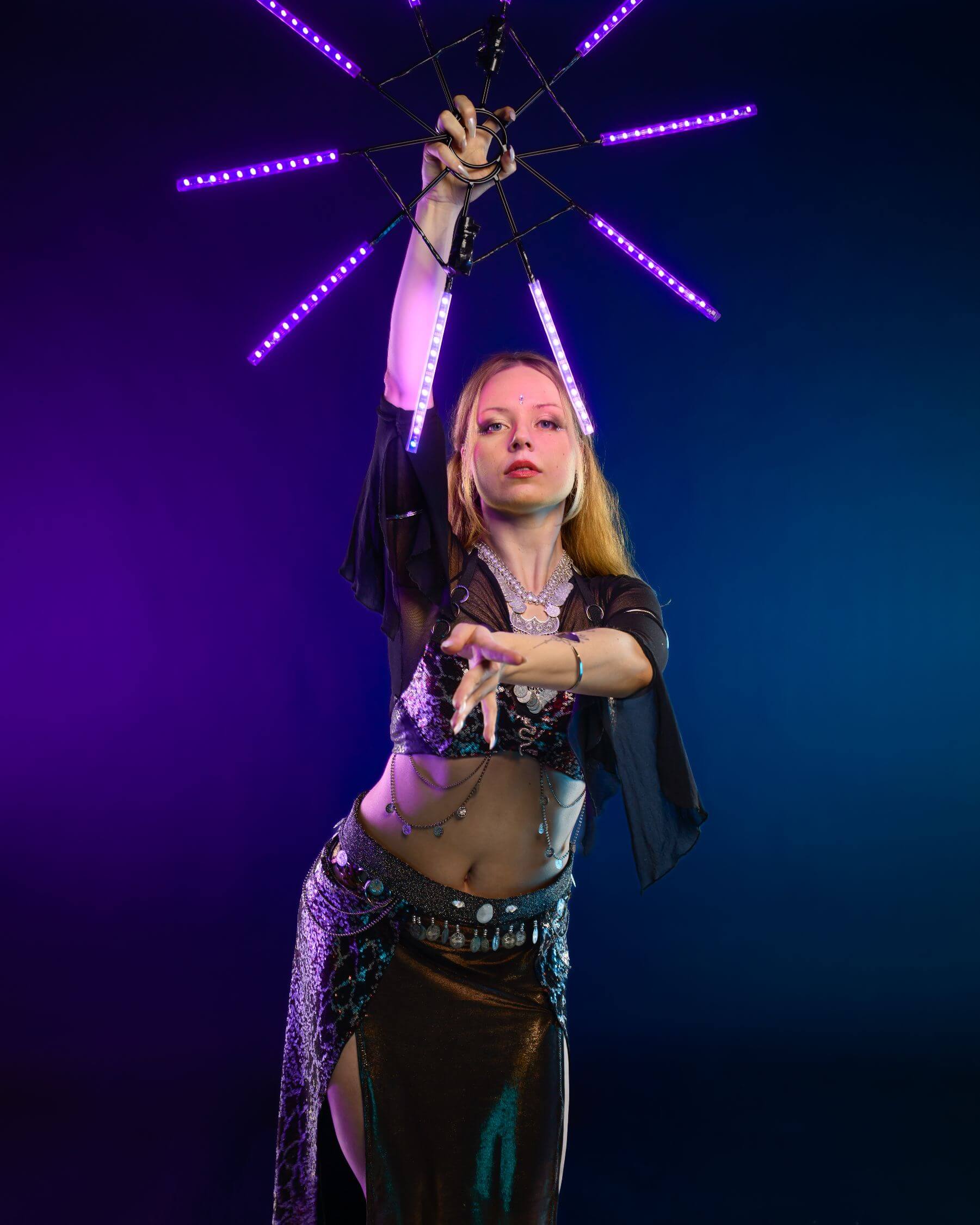 Selene Dance & Arts on valo- ja tulitaide duo Tampereelta. Erikoistumme tuli- ja valoesityksiin, fuusiovatsatanssiin sekä vannetanssiin. Intohimonamme on luoda kauneutta ja toismaailmallista tunnelmaa yhdistämällä tanssia, tulta ja valoa.